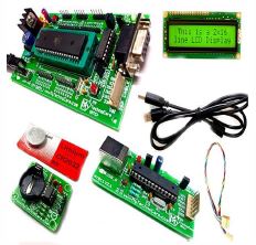 Contain 8K RAM, ROM Flash memory with battery backup, 16x2 LCD display, RS 232 USB interfacing facility with built in power supply. In System Programable , Microcontroller 8951RD2, 8 Push to ON switches, 7 segment display, LCD Display, 8 LEDs, Pins for all 32 port pins . It have following separate modules which can be interfaced to the main module .