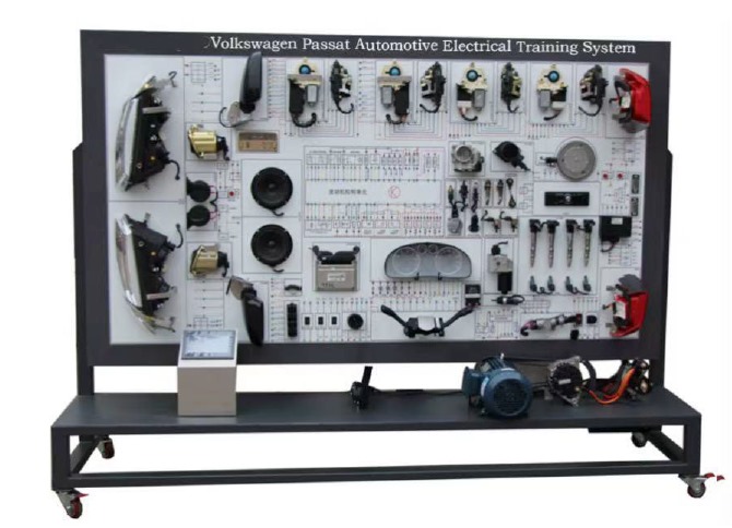 The training system is made based on the Volkswagen Passat B5 whole-vehicle electrical system, and complete with auxiliary system and all parts are original, which fully demonstrates the composition structure and working process of whole-vehicle electrical, it is suitable for the teaching requirements of theoretical learning, practical operation, fault setting and diagnosis of whole-vehicle electrical.