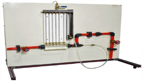 Static pressures at various points along the wall of a transparent Venturi tube are directly measured on a manometer equipped with a vent valve. A movable stainless steel total head probe is also provided. Flow through the Venturi tube is controlled by a valve at the outlet. As a primary flow measuring device, coefficient of discharge for the Venturi tube can also be determined.