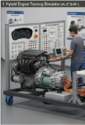 Automotive Engine Training Simulators – Short Specification (Easy Matching): Supply, installation, and commissioning of hybrid engine simulator, gasoline engine simulator, and CRDI diesel engine simulator, all fully operational and designed for automotive training, testing, diagnosis, and fault simulation;