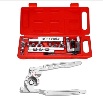 8-Piece Heavy Duty Flaring Tool Kit with 3-in-1 Pipe Bender – Manual Double Flaring & Swaging Tool Set for Copper, Aluminum & Soft Steel Tubing 3-in-1 Tubing Pipe Bender – Accurately bends 1/4", 5/16", and ...