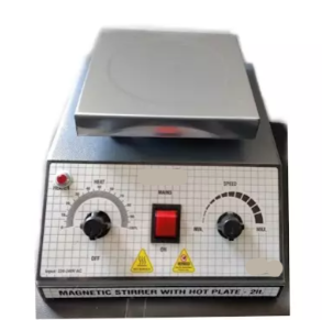 Hotplate with magnetic stirrer Max. stirring quantity (Water) - 1 Ltr Stirring Paddle (PTFE coated) length - 25 mm Speed range (rpm) - 15 -1200 Temperature Range - Upto 300 Degree C Top Plate Material - Sta...