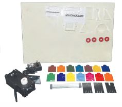can be used with whiteboard (included) or any installed steel / magnetic board. The set includes one light box with power adapter, three slits, one transparent color filters (set of 7), one opaque color filters (set of 7), one rectangular acrylic block, one semicircular acrylic block, one right angle block 90° x 45° x 45°, one right angle 90° x 60° x 30°, one equilateral