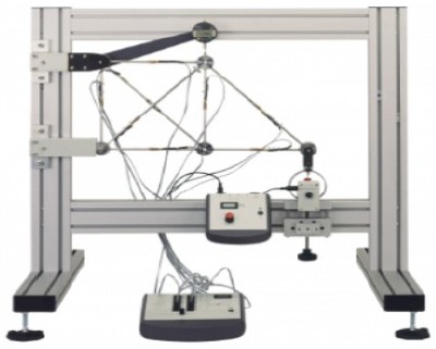 determinate. To make the structure indeterminate, students refit the missing member. Students manually apply a load to one end of the determinate framework using a screw thread and electronic load cell. The load cell connects to a Digital Force Display, which shows the applied load.