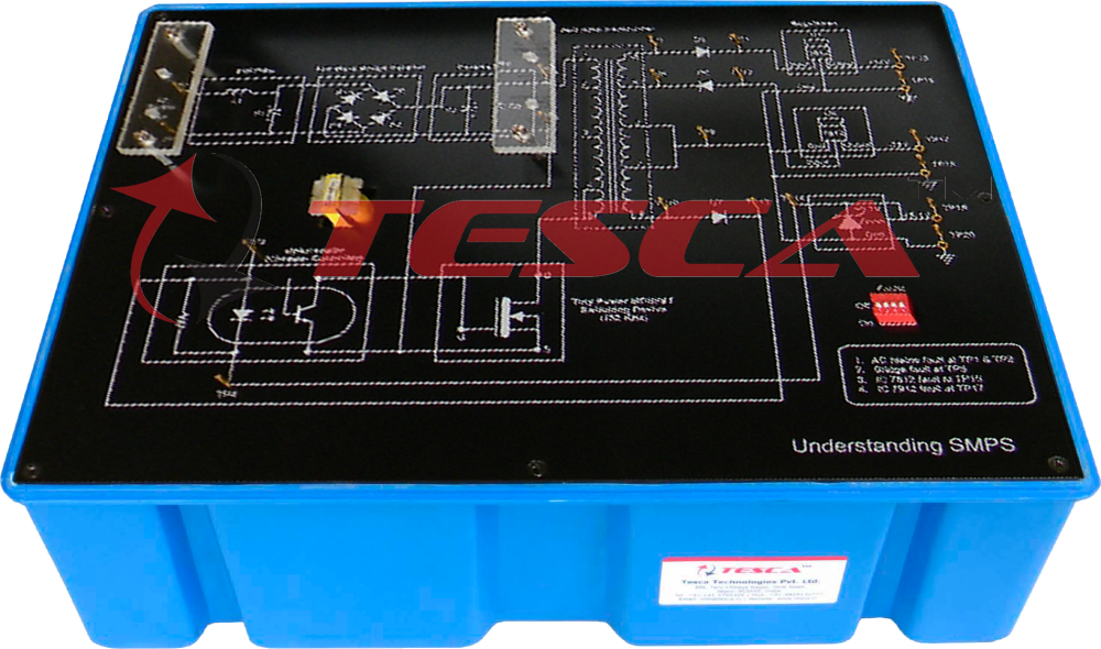 10913 SMPS Trainer has been designed specifically for the study of Switch Mode Power Supply. SMPS consists of a rectifier section, filter section, switching section and regulator section. Each section is explained separately and the internal structure of different blocks is also described. Switching transformer and chopper controller circuit are the main parts of SMPS. Switching Transformer works at high frequency, so it is also called as HFT i.e, High Frequency Transformer and the chopper controller is simply DC to DC controller. It gives constant output even when the AC mains is varied from 80V to 270V. Students can vary Voltage by using Variac.