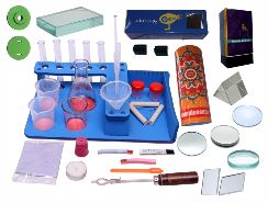 glass slab, prism, mirror stand, lens stand, kaleidoscope DIY kit, periscope DIY kit, pinhole camera DIY kit.